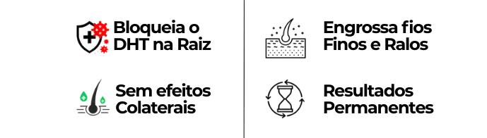 Com a redução do DHT, o couro cabeludo desinfla rapidamente, eliminando a irritação crônica, criando o ambiente ideal para o crescimento de fios saudáveis e resistentes